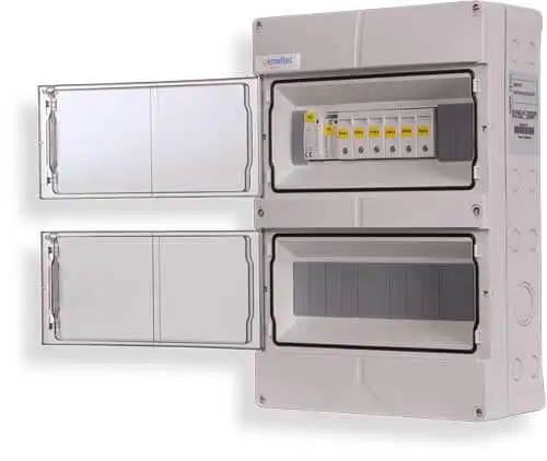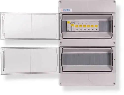 Das Feuerwehrschutzsystem von enwitec erstellst du mit einem GAK am Dach (mit integriertem Überspannungsschutz), einer Remote Control Unit und idealerweise einem E-Stop Switch. Der E-Stop Switch ist der rote Not-Aus Schalter und schaltet die PV-Anlage ab. Die Kontrollleuchten zeigen dir, ob die Anlage gerade in Betrieb oder abgeschaltet ist. Eine detaillierte Funktionsbeschreibung findest du in den Downloads.