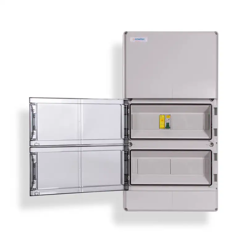 Die enwitec Umschalteinrichtung für den KOSTAL Plenticore G3 gewährleistet eine sichere Trennung der angeschlossenen PV-Anlage und der Verbraucherverteilung vom öffentlichen Stromnetz bei Netzausfall. Gleichzeitig bietet sie eine zuverlässige Ersatzstromversorgung. Diese anschlussfertige und vorgeprüfte Lösung spart den aufwendigen und kostspieligen Eigenbau einer Umschalteinrichtung.