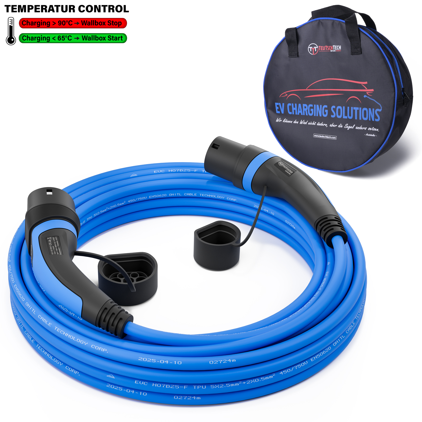 Mit TEUTSCHTECH Ladekabeln fährt Ihr Elektrofahrzeug dank innovativer Temperaturüberwachung und 3 Jahren Garantie ganz vorne mit.