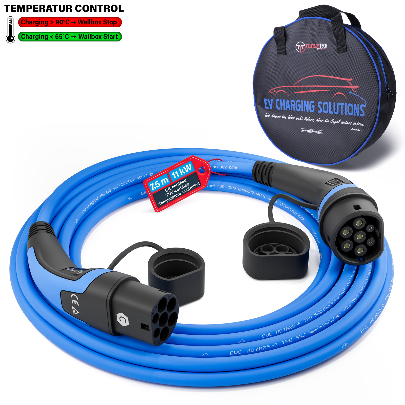 Mit TEUTSCHTECH Ladekabeln fährt Ihr Elektrofahrzeug dank innovativer Temperaturüberwachung und 3 Jahren Garantie ganz vorne mit.
