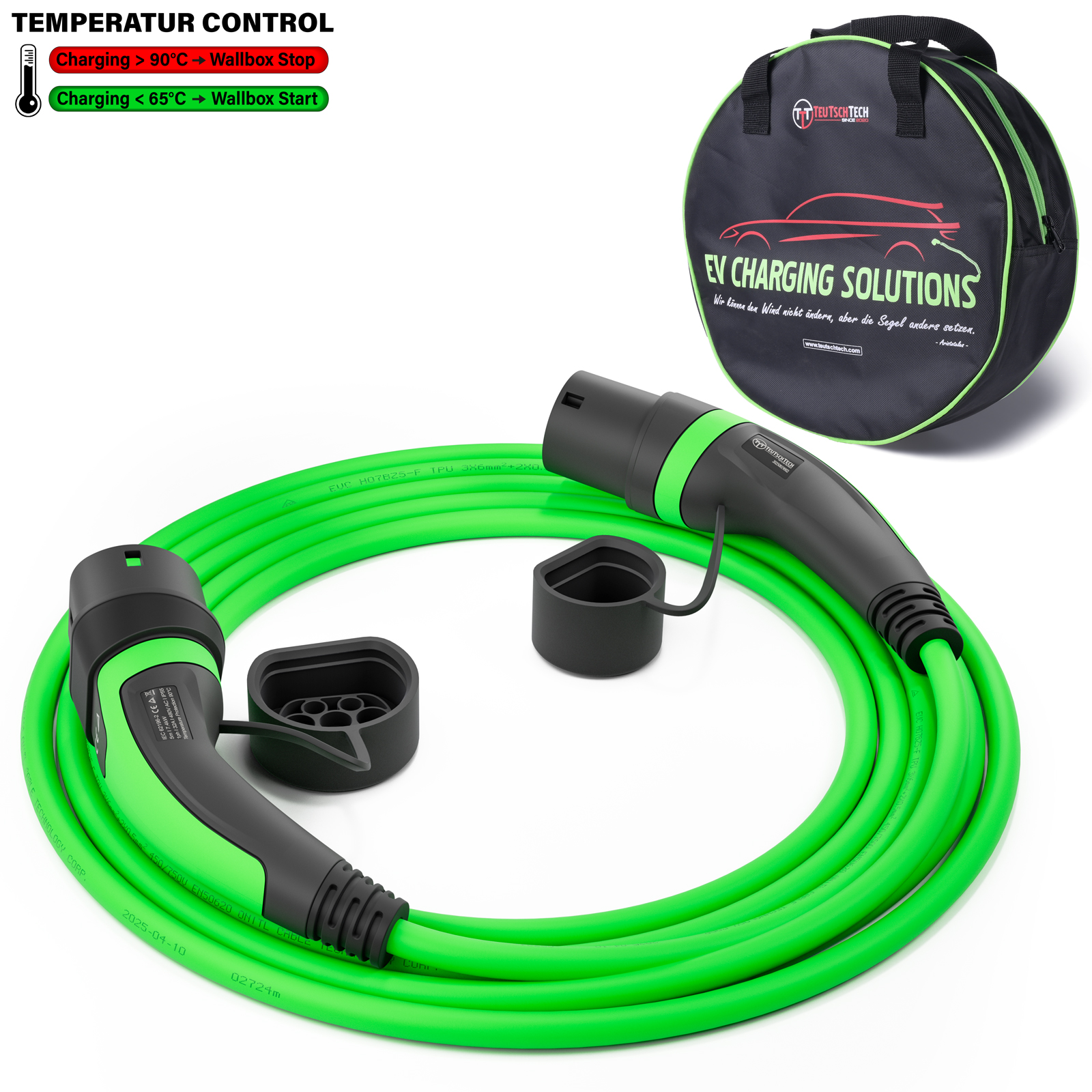 Mit TEUTSCHTECH Ladekabeln fährt Ihr Elektrofahrzeug dank innovativer Temperaturüberwachung und 3 Jahren Garantie ganz vorne mit.